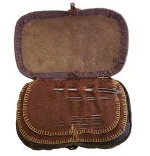 Antique NEEDLE & SEWING Case SHAKER Community Leather & Velvet 1900s #1