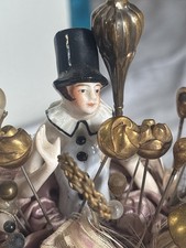 Antique Porcelain Pierrot Clown Pincushion w/Hat Pins & Hair Work Ring Victorian
