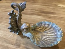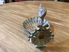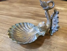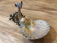 Antique Rare Heavy Brass Soap Trays and Towel Hook Dolphin/Clam Shell Set of 3