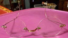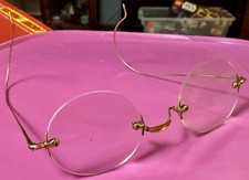 Antique rimless glasses drilled lens spectacles wire temples original case 1800s