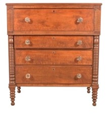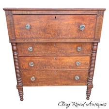 Antique Sheraton Cherry Birdseye maple tiger chest of drawers dresser country