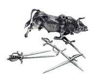Antique Silver Matador Bull form hors d’oeuvre Sword Skewers