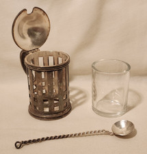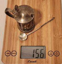 Antique Silver Soldered Pick Barth Mustard Pot With Glass Liner & Spoon 156 g