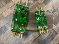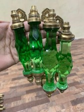Antique Style Big & Small Crystal/Cut Green Glass Brass Door Handle Collectible