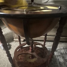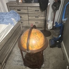 Antique Style Wooden Globe Bar with Map Print, Lift-Up Top, Distressed Finish