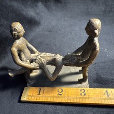 Antique Tibetan Bronze Erotic Motif Karma Sutra Sculpture Two Men & A Woman