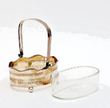 Antique Victorian 19th C. Silver Plated Sugar Basket with Glass Insert- 7.5in