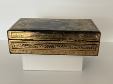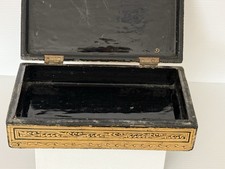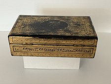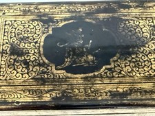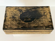 Antique Victorian Anglo-Indian Gilt Laquer Jewelry Box Hand Painted Kashmir 1880