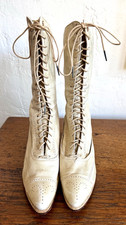 Antique VICTORIAN Edwardian WHITE LEATHER LaceUp TALL BOOTS Reed & Co Spectators