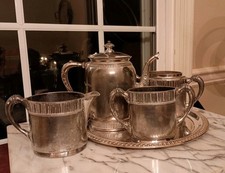 Antique Victorian Meriden Tea Coffee Pot Quadruple Silver Plate, 5 Pieces