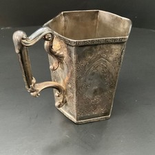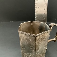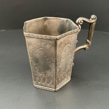 Antique Victorian Silver Clad Hexagonal Paneled Cup Christening Mug Engraved