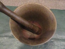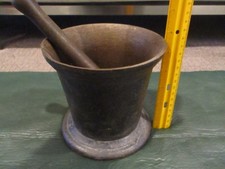 Antique Vintage Cast Iron 5-1/2″ tall Mortar & 8″ Pestle Set