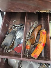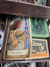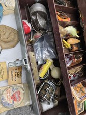 Be the first to review “Antique Vintage Fishing Tackle Box Full marbleized Glass eyes lures reel baits” Cancel reply