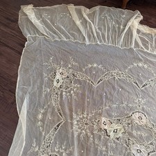 Antique Vintage French Swiss lace Tambour BED, Curtain, Runners, Side Table