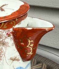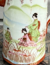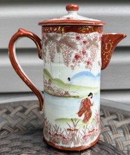 Antique Vintage Japanese Kutani Coffee Tea Chocolate Pot Geishas Mountains