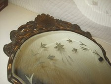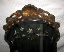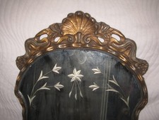 Antique Vtg Ornate Mirror NURRE MAESTRO ETCHED Venetian Shell Gilded Victorian