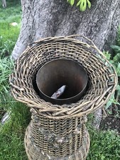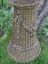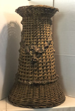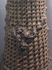 Antique Wicker Barbola Gesso Roses Large Floor Vase “23.5”