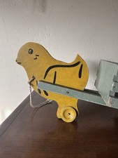 ANTIQUE WOODEN HANDMADE BABY CHICK PULLING WAGON PULL TOY RARE EASTER DECOR