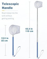 Aquarium Shrimp Net With Long Extendable Stainless Steel 4 Inch Blue Round