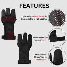 Archery 3 Fingers Tab Cow Leather Glove Arrow Guard for Compound Bow Shooting