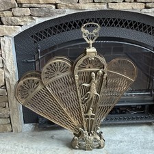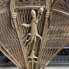 Art Deco Antique Brass Gold Foldable Fireplace Screen with Handle