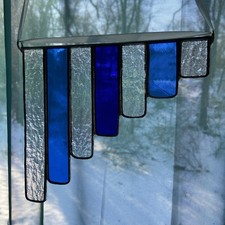 Art Deco Style Stained Glass Cobalt Blue Iridescent Window Suncatcher