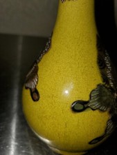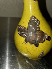 Asian 8″ Tall Decorative Vase / Bottle Vibrant Yellow With Butterflies. AS IS!!