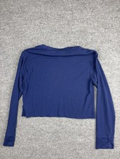 Athleta Girl Shirt Girls XXL 16 Blue Cropped Long Sleeve Crewneck Thermal Waffle
