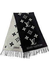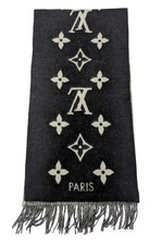 Auth Louis Vuitton M71040 Echarpe Reykjavik Scarf 100% Cashmere Black x Gray