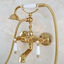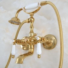 Bathroom Plumbing Gold Color Brass Bath Tub Clawfoot Faucet With Hand Shower