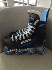 Bauer RSX Inline Hockey Skates Size 9 Hi-Lo Large Chassis 8080 76A 76mm Wheels