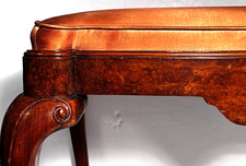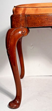 Beautiful Antique / Vtg Queen Ann Burr / Burl Walnut Dressing Stool – Bench