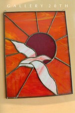 BEAUTIFUL! MID CENTURY MODERN STAINED GLASS BIRD & SUNSET! GULL ORANGE 70’S VTG