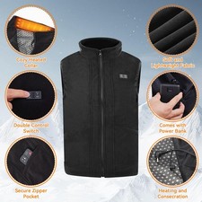 Beautiq Heated Vest for Men, Fleece with Battery, 16000mAh 7.4V Medium, Black