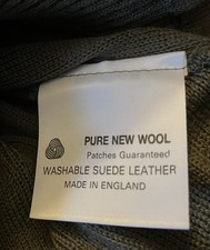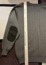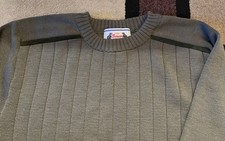 Beaver England 100% Wool Shooting Sweater Leather Elbow Patches Olive Green Sz.L