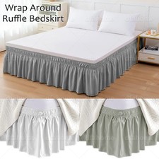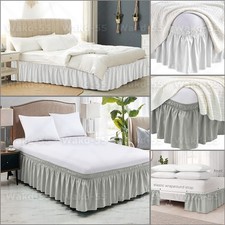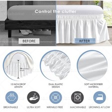Bed Dust Ruffle Skirt Queen King Twin Full Easy Wrap Around Elastic Bedskirt 15″