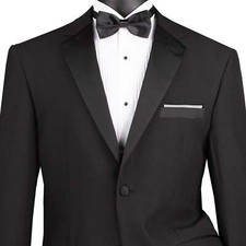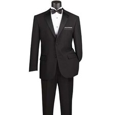 BIG & TALL Men’s Black Tuxedo Suit w/ Sateen Lapel & Trim Classic Fit NWT