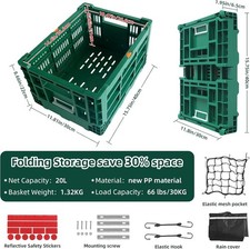 Bike Basket, Foldable 35L Large Capacity Rear Bike Basket, and Foldable Basket
