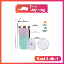 BJPKPK Insulated Stainless Steel Tumbler, Coffee Cup with Lid and Straw, Double