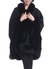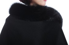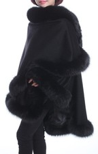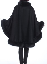 Black Cashmere cape with Fox fur Collar Trim all around one size for all new