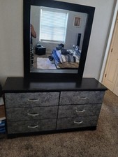 Be the first to review “Black Gray Bedroom Set, Bed, Nightstand, Dresser, Mirror, Modern Matte Wood”