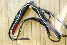 Black Horse Patent Leather Driving Harness White Trim Set Available In Full Size