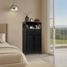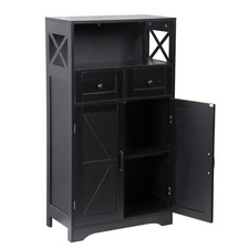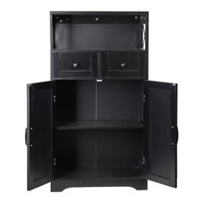 Black Storage Cabinet with Doors & Drawers Freestanding Kitchen Pantry Cabinet