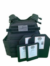 Black Tactical Vest Plate carrier Chest Rig w/ Curved 8×10 Plates & Side Plates