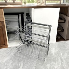 Blind Corner Pull Out Cabinet Organizer 2 Tier Height Adjustable w/ Soft Close