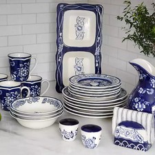 Blue Floral Hand Painted 16-pc. Dinnerware Set