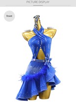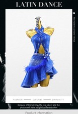 Blue Latin Dance Dress Feather Ballroom Costume Stage Practice Sexy Dancewear