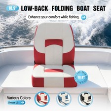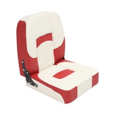 Boat Seat Low Back Folding Fishing White+Red Seat Captain Chair Foam Padding
