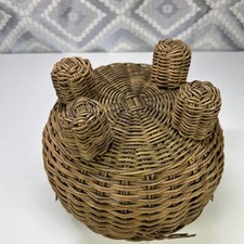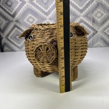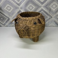 Boho Rattan Wicker Glass Eyed Pig Basket-Pig Farm Decor-Candy Keys Storage