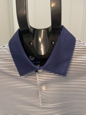 Boston Scott junior performance golf shirt M unisex Blue and white stripe
